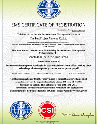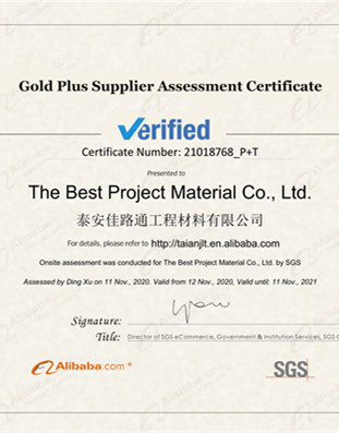 ? ? ? 泰安 佳路通 工程材料有限公司(簡稱為佳路通)自于2007年成立以來一直致力于土工合成材料的研發、生產、銷售和服務。公司主導產品有光面土工膜,糙面土工膜,復合土工膜,以及短纖土工布,長絲土工布,機織土工布,聚丙烯編織土工布,經編滌綸土工格柵,塑料土工格柵,鋼塑土工格柵,玻纖土工格柵,HDPE土工格室,復合排水網,排水板,排水網,膨潤土防水毯等。 公司座落于馳名中外的泰山腳下,東距京滬、京福高速公路泰安站僅兩公里,與京...
